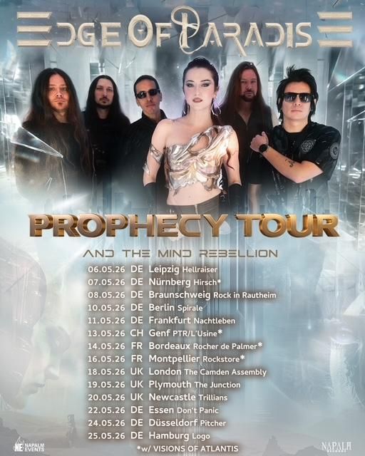 Los Angeles cinematic rock band Edge of Paradise have announced Prophecy and the Mind Rebellion tour, spanning across Europe and UK for spring 2026, including select support dates with Visions of Atlantis, as the band brings its immersive futuristic live show back overseas.