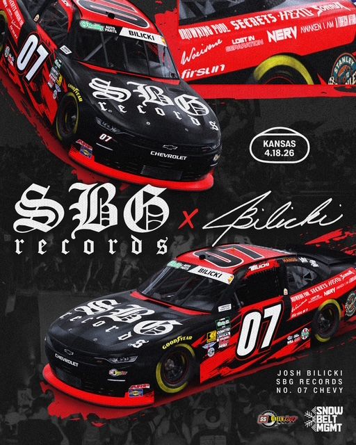 “SBG Records is such a fun partner. I grew up listening to Drowning Pool and have been checking out some of their other artists,” said Bilicki. “Kansas is always a fun race, and I’m looking forward to the energy SBG will bring to the track.”