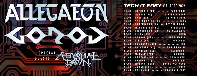 ABYSMAL DAWN will make their return to European stages this September, joining co-headliners Allegaeon and Gorod across 20 dates on the Tech It Easy! UK/European Tour. The run covers France, the United Kingdom, Germany, the Netherlands, Poland, the Czech Republic, Switzerland, and Italy, and marks the Los Angeles quartet’s most extensive European appearance since their 2022 support run with Atheist and Suicidal Angels.