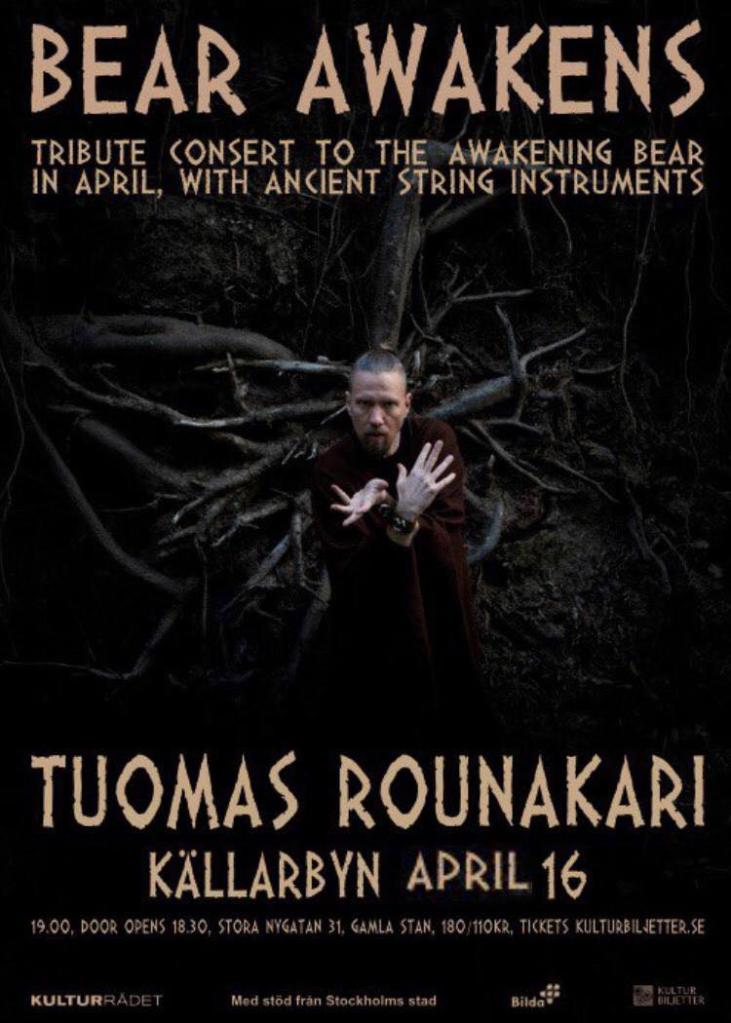 Finnish violinist, composer, ethnomusicologist TUOMAS ROUNAKARI have announced his tribute concert to celebrate the awakening bears, with ancient string instruments! The concert will take place on April 16th at Källarbyn in Stockholm, Sweden. More information at https://www.facebook.com/events/189445833817530.