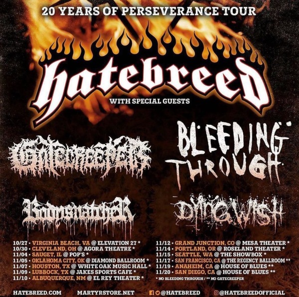 BLEEDING THROUGH participated in two Ozzfests, Vans Warped Tour, MTV2‘s Headbanger’s Ball Tour, Australia’s Soundwave festival, Europe’s Never Say Die! and more. They’ve supported bands like SLAYER, MARILYN MANSON, BULLET FOR MY VALENTINE, AFI, HIM and MACHINE HEAD. Over the years, they headlined the Strhess Tour and other package tours. Their U.S. headlining trek in support of “The Truth” featured support from EVERY TIME I DIE, BETWEEN THE BURIED AND ME and HASTE THE DAY and sold out two nights back to back at the Anaheim House Of Blues.