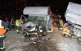 “We just left Aschaffenburger Germany heading our way to Munich and we were just involved in a bus crash Everyone is Ok just a little shaken up. It doesn’t help when it’s 4:30 am and snowing outside!”