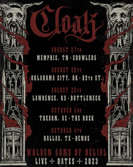Today, Cloak are adding five solo shows that will bookend this tour. They’ll start by riding ahead through Tennessee, Oklahoma and Kansas, before hitching on with Uada and Ghostbath in Colorado. After they’ve slaughtered the stage together, Cloak will carry the black flame into the Southwest for two brutally fiery nights in Arizona and Texas.