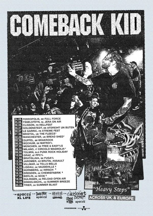 After a quick changeover—keeping the same portion of the stage and the basic Neckbreakker setup (banner and very dark lighting)—it’s time for the Canadians Comeback Kid. A much more seasoned band, active since 2001 with eight albums under their belt, they hammer us with hardcore punk in the tradition of genre giants like Biohazard and Hatebreed.
