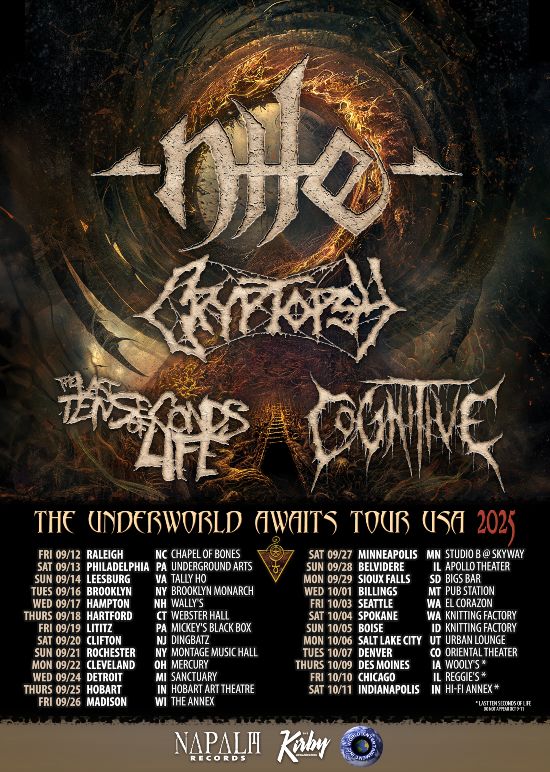 This fall, the band are joining brutal technical death metal pharaohs Nile on a 25-date tour of the East Coast, Midwest and Pacific Northwest. Joining them on this run are The Last Ten Seconds of Life and Cognitive.