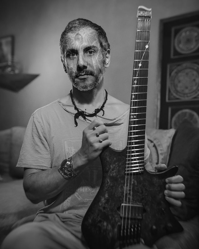 DARK (Roopam Garg) performs as “code worker” on the album, providing harmonic, harp-like guitar textures. DARK also known for his other works with “The Surrealist” is an experimental, ambient artist, pushing the avant-garde guitar envelope using extended techniques and consciousness inspired soundscapes.
