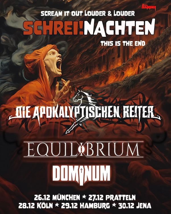 But that’s not all: To round off their big anniversary tour, DIE APOKALYPTISCHEN REITER announcing a very special SCHREI!NACHTEN show.