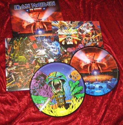 A photo of the double vinyl picture disc version of “En Vivo!”, the new concert Blu-Ray, two-DVD set and double soundtrack album from legendary British metallers IRON MAIDEN, can be seen below.