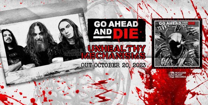 GO AHEAD AND DIE unleashed their caustic sophomore album Unhealthy Mechanisms last year via Nuclear Blast Records. A torrential whirlwind born from the livid minds of Igor Amadeus Cavalera (HEALING MAGIC) and Max Cavalera (SOULFLY, CAVALERA CONSPIRACY). The sophomore album is a fresh dive into the madness of society and the pollution that ravages our minds. Unhealthy Mechanisms was produced by Igor Amadeus Cavalera while John Aquilino handled the recording in his Platinum Underground Studio steeped in the mystic ambiance of the Superstition Mountains’ foothills. The mixing and mastering were once again handled by Arthur Rizk (CAVALERA, SOULFLY, TURNSTILE). For the artwork, the band enlisted Santiago Jaramillo of Triple Seis Design to create the unnerving design that fits with the album title. GO AHEAD AND DIE‘s newest record is a testament to declining mental health around the world, and a reminder that we are not alone in our pain. The mind is lost. The fuse is lit. Time to set everything ablaze.