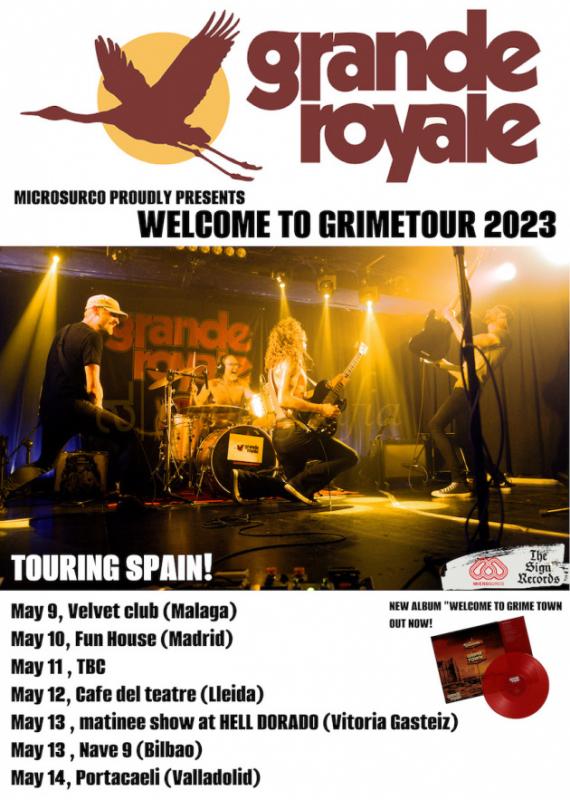 Swedish garage rock outfit Grande Royale launched their sixth studio album “Welcome to Grime Town” in late March, 2023. Celebrating the release, the group is heading to Spain in May, playing 7 high octane shows on the Iberian peninsula. (Dates below). Besides this, Grande Royale also shares a music video for the track “Status Doom”, featured on the new album. Watch the video here: