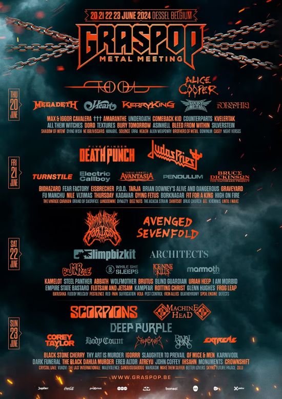 This final clutch of 13 names completes the line-up for #GMM24! Slayer guitarist Kerry King, the tandem Max and Iggor Cavalera and former Deep Purple bassist/vocalist Glenn Hughes are amongst the last acts to be announced for the 27th edition of Graspop Metal Meeting.
