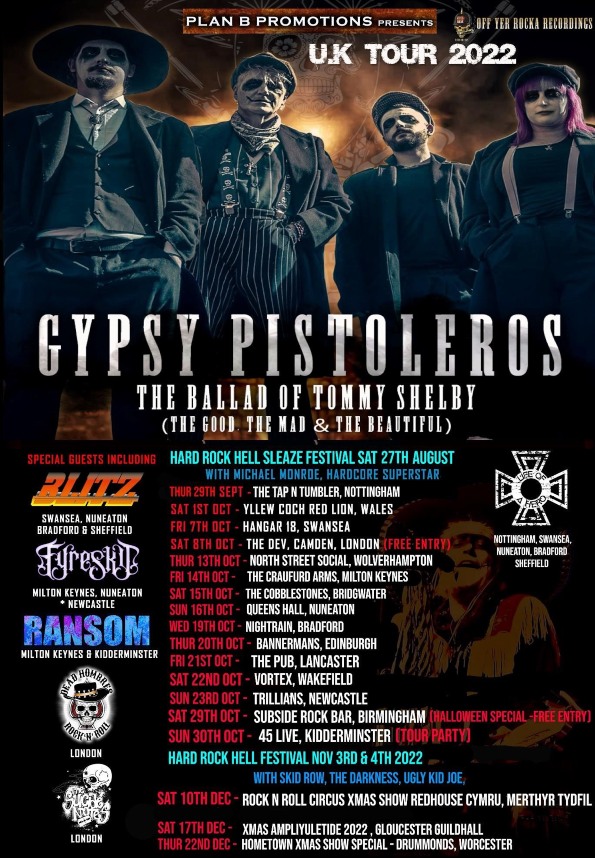 GYPSY PISTOLEROS release new album ‘Duende A Go Go Loco!’ on 3rd November, out via Earache. Singles ‘Ballad Of Tommy Shelby‘, ‘What’s It Like To Be A Girl?’ and ‘Come On Eileen‘ are out now.