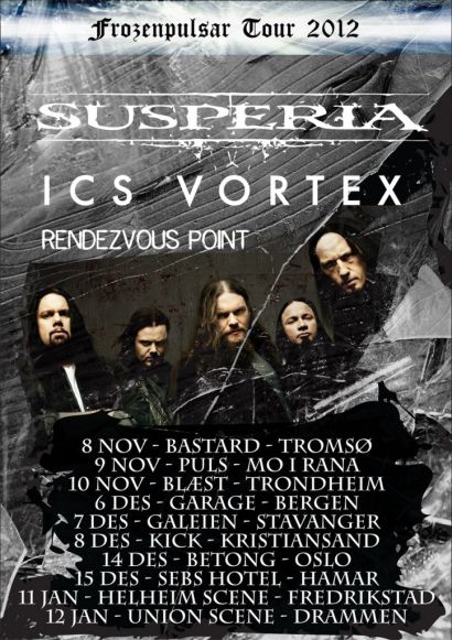 Former Dimmu Borgir and current Borknagar/Arcturus member ICS Vortex has checked in to comment as follows about the tour: “Susperia and ICS Vortex are taking Rendezvous Point out for a melodic metal ride covering four winter weekends around Norway. Experience dark freezing Norway through a warm night of illuminating metal!”.