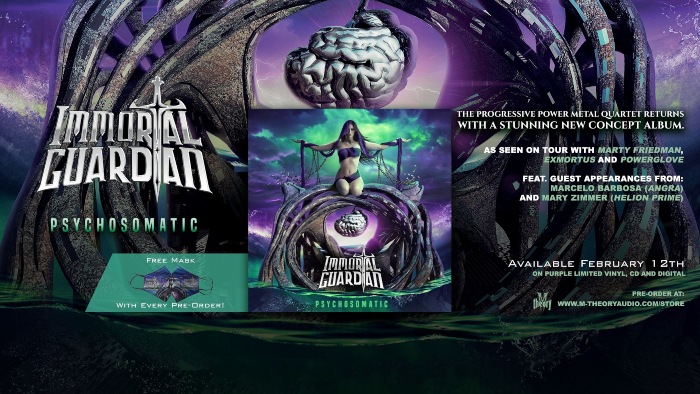 ‘Psychosomatic’ has been lauded by Metal Temple for its “melody and power, two things displayed in a smashing way throughout this album” and led Metal Rules to call the group “one of the most interesting bands that have emerged in recent years on the international power metal scene.” Video clips for the title track, “Candlelight,” and “Phobia,” the latter of which featured a guest appearance by Angra guitarist Marcelo Barbosa, have captured the ears of heavy metal fans worldwide, while their videos for “Clocks,” “Lockdown” and “Read Between The Lines” have earned praise from the likes of MetalSucks, Metal Injection and Gear Gods. CD and digital editions of “Psychomatic” are still available for purchase at https://www.smarturl.com/immortalguardian.