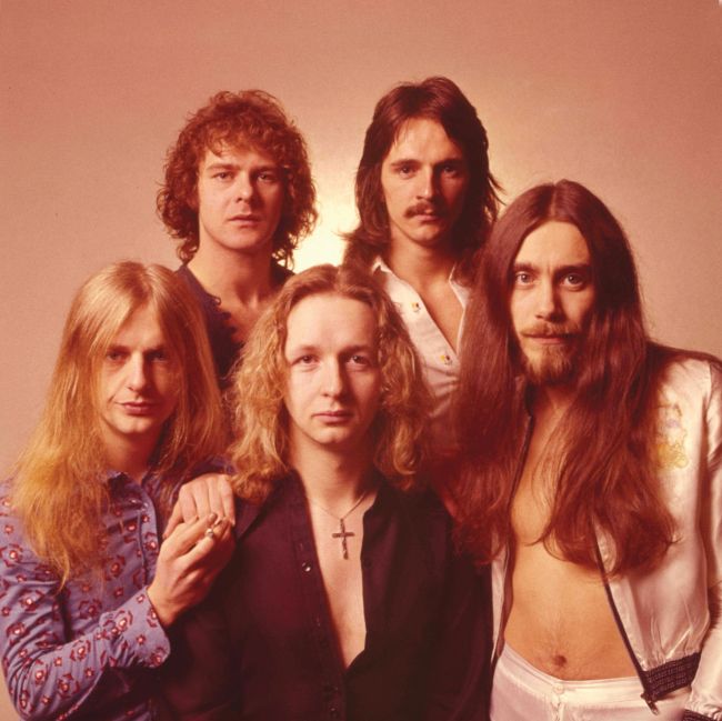 1974 – L to R: KK Downing, John Hinch, Rob Halford, Glenn Tipton, Ian Hill