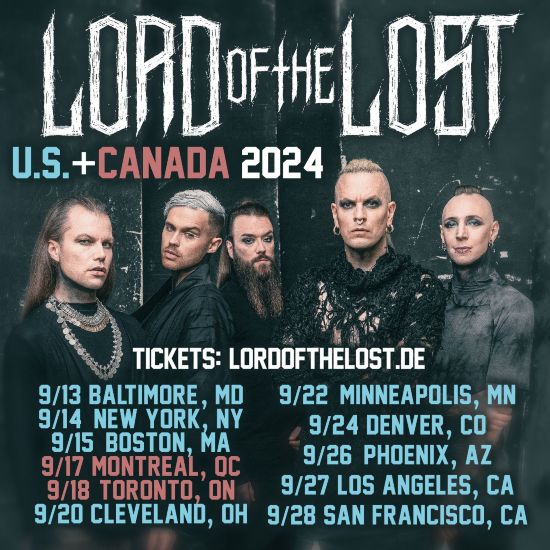 15 Years Of LORD OF THE LOST Tour 2024: 22.03.24 DE – Nuremberg 23.03.24 DE – Munich – LOW TICKETS! 24.03.24 IT – Trezzo sull’Adda 26.03.24 CH – Pratteln 27.03.24 FR – Grenoble 29.03.24 ES – Barcelona 30.03.24 ES – Madrid 02.04.24 FR – Paris 03.04.24 LU – Luxembourg 04.04.24 DE – Frankfurt 05.04.24 DE – Cologne – SOLD OUT! 06.04.24 NL – Amsterdam – LOW TICKETS! 17.04.24 CZ – Prague 18.04.24 HU – Budapest 19.04.24 AT – Vienna 20.04.24 DE – Stuttgart – LOW TICKETS! 24.04.24 DE – Berlin 25.04.24 PL – Warsaw 26.04.24 PL – Krakow 27.04.24 DE – Leipzig