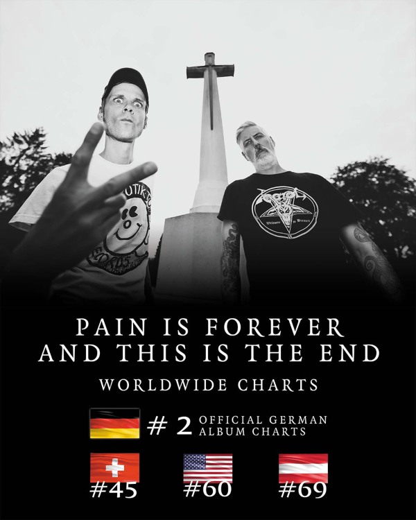 Where 2022’s Pain Is Forever And This Is The End saw the pair bring a sonic richness to their madly heavy blackened death-punk grooves, assisting the record to its position at #2 on Germany’s Official Top 10 album chart, this year’s Post Apocalyptic Depression smashes the palette and punches a hole in the canvas. “We wanted to do everything different from the last album,” affirms guitarist/vocalist Hanno Klänhardt. “The last album was very produced. A huge sounding record with clean production. Display of power. That was what we wanted and felt at that time. Now we are trying to destroy what we’ve built up with the last album. There is a certain beauty in disappointing people’s expectations.”