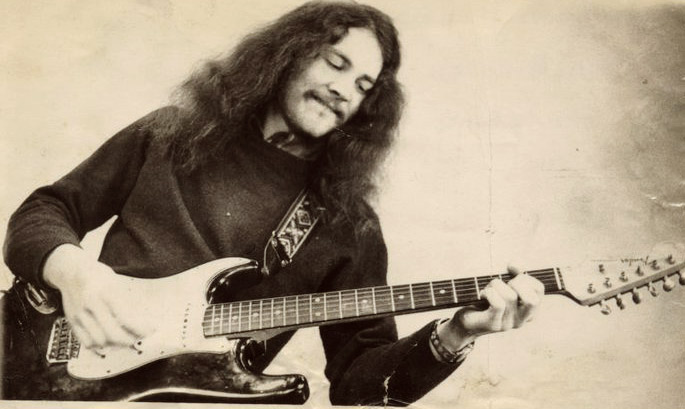 Graham Oliver with his left hand 63’s Stratocaster, 1975