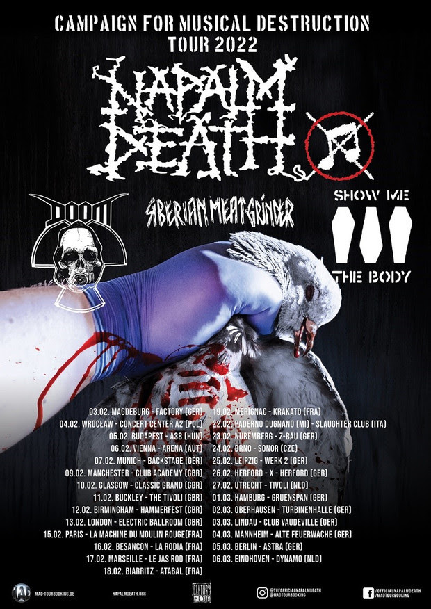 There aren’t many tours that have survived for decades and are still consistently interesting… like the Campaign For Musical Destruction Tour 2025. This successful and extraordinary Tour has been leading NAPALM DEATH through the world for over 30 Years already. The tour always convinces through a colourful and creative blend of extreme underground music. The revolutionary extreme music titans always bring a package of sonically and ethically like-minded acts. For sure, this tour has always been a guarantee of interesting musical blends, and a door-opener for new musical variations and styles. It has always been, and still is, undoubtedly legendary. Also, there is no other comparable Metal-crossover tour that has been so successful without having to change its concept for decades; always presenting new influences and extreme music against all the odds and never compromising. After all, let’s not drift back in time; let’s talk about the future. The tour with the legendary name Campaign for Musical Destruction 2025, with which the iconic NAPALM DEATH have been touring the World’s Stages for 30 Years, has once again, with M.A.D. Tourbooking, put-together another great line-up, including Napalm Death, Crowbar, Full Of Hell and Brat. If you want to be destroyed by “noise” rather than “music”, then you are in the right Place!
