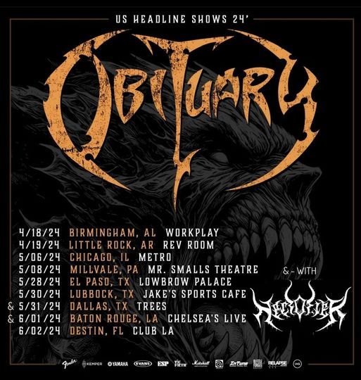 “We couldn’t be more excited to be a part of this tour! When we got word that our good friends Amon Amarth asked for Obituary to join them here in North America, there was no hesitation, just an immediate yes! We are honored to share the stage and some cold beers with them again along with our longtime friends Carcass and San Diego brothers Cattle Decapitation! If this lineup doesn’t get you excited, check your pulse cause you may be dead!“