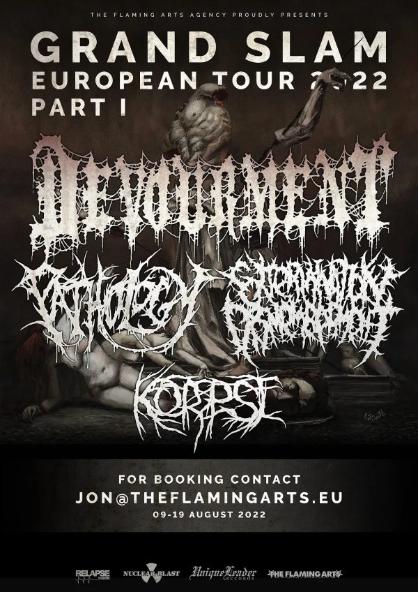 PATHOLOGY is renowned for their unyielding death metal assault on the ears, fueled by a relentless hunger to produce bludgeoning music with profound themes that set them apart from others in the genre. Formed in 2006 by Dave Astor, ex-cofounder of bands like The Locust and Cattle Decapitation, the band has evolved into its strongest lineup, creating a perfect combination of talent. Their music is an intense amalgamation of brutal riffs, crushing drums, and dark imagery, making it impossible to divert one’s attention from their blood-soaked and twisted world of death metal. Their live performances, filled with guttural growls and rumbling grooves, leave both old and new fans captivated by the sheer force of PATHOLOGY‘s music. The band left a trail of triumphant performances across North America, Mexico, Canada, and Europe, sharing the stage with renowned acts (such as Obituary, Deicide, Nile, Vader, Immolation, and Grave, among others). Their impressive fan base of over 225,000 followers on social media is a testament to the fervor they ignite among their supporters.