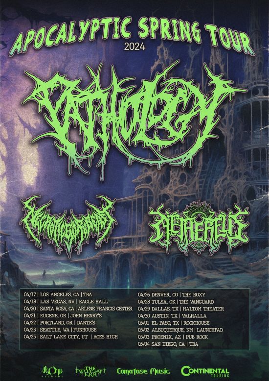 “We are very happy to release this album to the world,” Dave Astor comments. “It delves into conspiracies and ancient mythos, while incorporating new elements to the music. Making this album was incredibly enjoyable, and we hope our fans appreciate it as much as we do.” On the fast-approaching concert dates, Dave adds: “Pathology is thrilled to announce our upcoming spring tour alongside NecroticGoreBeast and Aethereus. Get ready for an unforgettable experience as we hit the road again. Secure your tickets now and join us for an epic night of metal!”