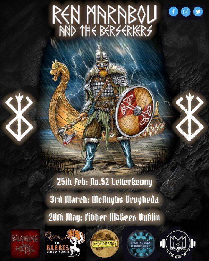 Irish Viking Metal/Norse Pagan Rockers REN MARABOU AND THE BERSERKERS are featuring with their song ‘Bloodlines’ on “Burning Metal Irish Compilation: Volume 1”. The compilation was released yesterday, February 25th, on Burning Metal’s Bandcamp page, for free download at https://burningmetalirl.bandcamp.com/album/burning-metal-irish-compilation-volume-1!