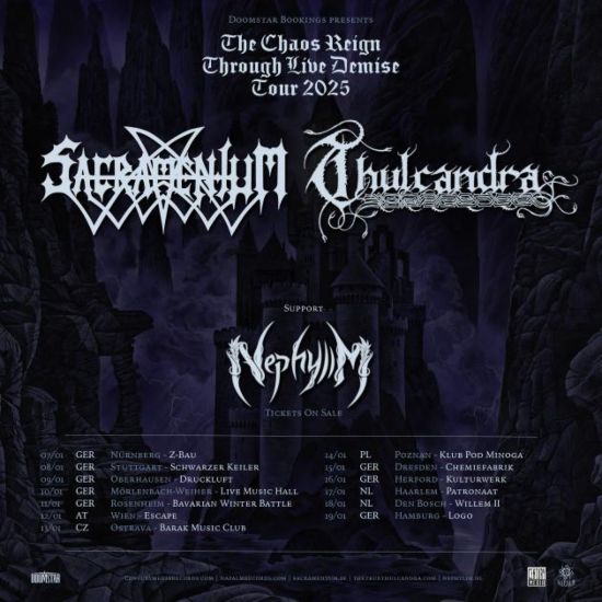 After finishing a comprehensive touring run across north America as well as several European Summer festivals, SACRAMENTUM will next perform a special hometown re-release show for The Coming Of Chaos on December 28th as well as a European tour together with THULCANDRA and NEPHYLIM in January.