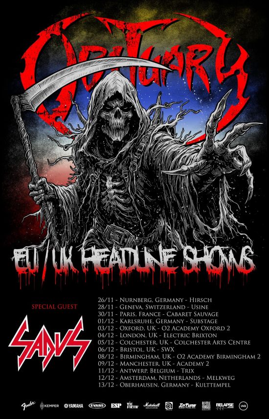 SADUS Tour Dates: July 27 – Petaluma, CA – Phoenix Theater Aug 8 – Nottertal-Heilinger Heights, DE – Party San Open Air Festival Aug 9 – Kortrijk, BE – Alcatraz Metal Festival Aug 10 – Josefov, CZ – Brutal Assault Festival Aug 11 – Derbyshire, UK – Bloostock Open Air Festival