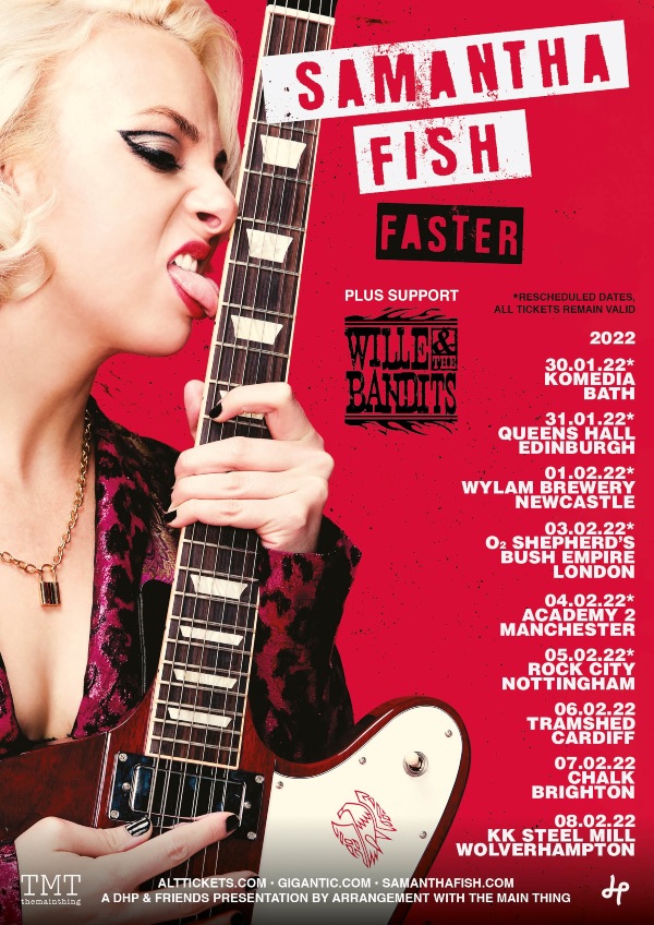 On the UK tour, Samantha and Jesse will perform songs from their new album “Death WishBlues” including the new single “Lover On The Side,” and the radio smash “Deathwish.” Samantha will also perform songs from her 2021 album “Faster” featuring the singles “Twisted Ambition”, “All Ice, No Whiskey”, “Better Be Lonely” and the title track “Faster”. Samantha will also perform songs from her back catalogue including the popular “Bulletproof” from her 2019 album, “Kill Or Be Kind.”After launching her recording career in 2009, Samantha Fish established herself as a rising star in the contemporary blues world. The charismatic singer-guitarist-songwriter has earned a reputation as a rising guitar hero and powerful live performer, while releasing a series of acclaimed albums that have shown her restless creative spirit consistently pushing her in new, exciting, and often unexpected musical directions.