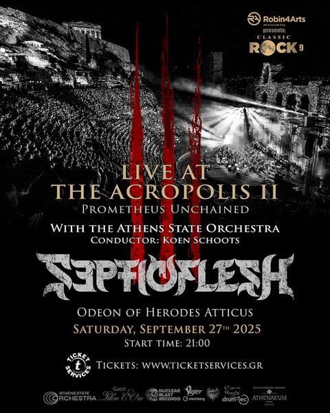 SEPTICFLESH comments, “Children of Prometheus, we are summoning you to attend our second ceremony at the Odeon of Herodes Atticus at the Acropolis of Athens, one of the most iconic places in the world! Last year, a lot of people couldn’t join us, as the tickets were sold out shortly after the show announcement. Thankfully, and just before the closing of this ancient place for at least 3 years for necessary maintenance and restoration work, we have been allowed to return for the Classick Rock 9 on the 27th of September 2025. Once again, we will be joined by the Athens State Orchestra, Adult and Children’s Choir under the baton of Koen Schoots, as we will perform an updated setlist. See you there!”