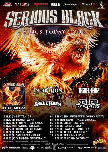 On the heels of their latest album “Rise Of Akhenaton” [2024], SERIOUS BLACK are celebrating their 10th anniversary with an own headline tour this spring, following an enormously successful European run alongside SONATA ARCTICA, FIREWIND as well as TUNGSTEN. Special guests AUTUMN BRIDE, DRAGONY and RIGORIOUSwill complete the line-up for the upcoming festivities.