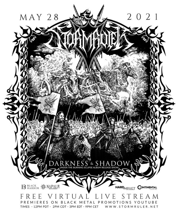 Fresh off of announcing their upcoming 2023 tour dates with scene giants Cannibal Corpse and Dark Funeral, St. Louis, MO black metal duo STORMRULER will soon release their new album, Sacred Rites & Black Magick, out this Friday, October 14 via Napalm Records! Sacred Rites & Black Magick weaves epic tales of war, history, black magick and sorcery beyond the standard confines of black metal, birthing an unforgettable conceptual journey of legend that any metal fan would be remiss to ignore.