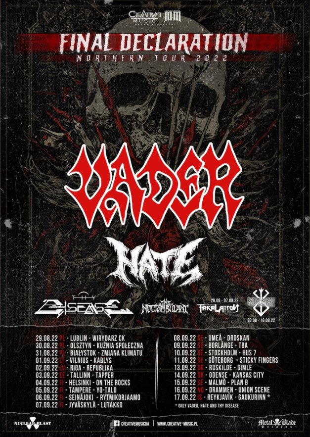 This September we will be joining the Mighty VADER, HATE, Thy Disease and The Noctambulant on the “Final Declaration: Northern Tour 2022″ all across Scandinavia.”