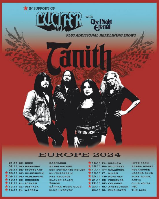“Our tour this fall takes us to some new territories. We can’t wait to play for our fans in those cities as well as at our regular haunts. We are also so excited to share the stage with Lucifer and The Night Eternal. This package is gonna be hard to beat. See you in Europe!“