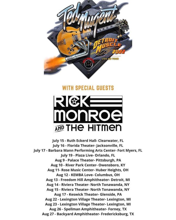 RICK MONROE & THE HITMEN announced that they will be hitting the road this summer in support of the rock n roll icon Ted Nugent on the Detroit Muscle 2022 Tour.