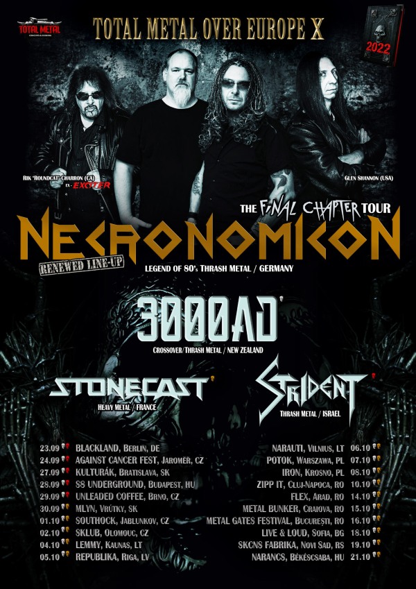 Germany’s Cult Thrashers NECRONOMICON are currently on their The Final Chapter Tour 2022 over Europe, which kicked off on September 23rd and still 10 shows to go.