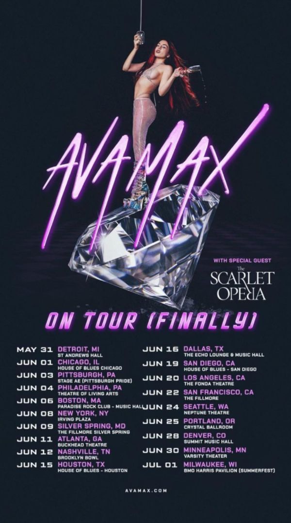 Following the recent release of their debut EP Comedy and sold-out headline tour across the west coast, the hottest rock band in Los Angeles, The Scarlet Opera, announces they will be supporting Ava Max on her upcoming tour this summer. Kicking off on May 31st in Detroit, the tour will make stops in New York on June 8th at Irving Plaza, Los Angeles on June 20th at The Fonda Theatre, and many more. See the full list of tour dates above, in the poster.