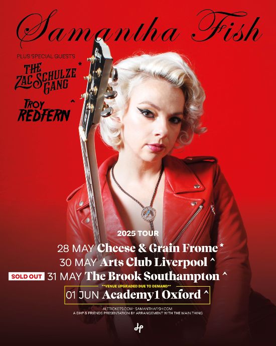 Critically acclaimed American guitarist and vocalist Samantha Fish is pleased to confirm British slide guitarist Troy Redfern as special guest at her upcoming UK concerts at Arts Club Liverpool (May 30), The Brook, Southampton (May 31), and O2 Academy Oxford (June 1), with the exception of Cheese & Grain, Frome (May 28), where her special guest are Kent rockers the Zac Schulze Gang.