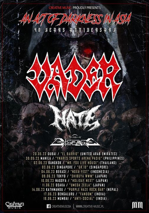 “VADERMANIAX !!! We are so happy to announce more shows on the upcoming “An Act Of Darkness” tour in Far East – organized in cooperation with Creative Music and Massive Music. We will visit Nepal and India at the end of the trip.”