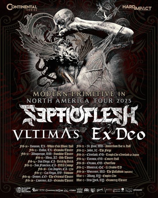 “We are teaming up with our metal brothers Septicflesh and Ex Deo for VLTIMAS’ first-ever North American Tour next month”, says David Vincent. “We look we look forward to sharing our strength and misery with our friends and fans. This indeed will be EPIC!”
