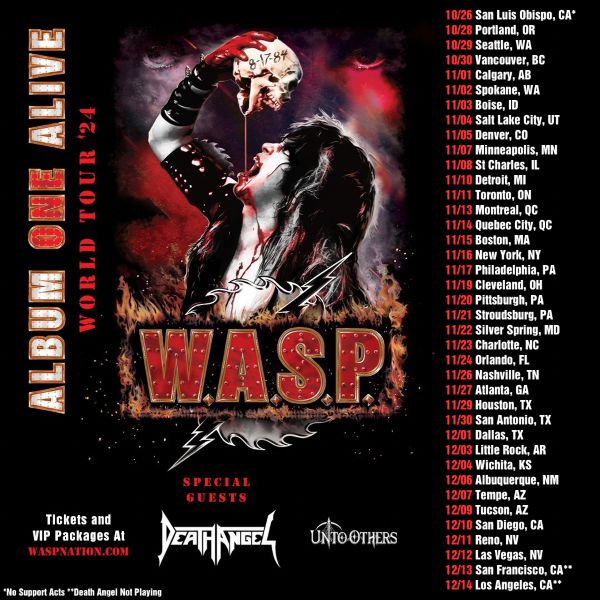 “Album ONE Alive!”, the title of W.A.S.P.’s upcoming North American Tour. August 17, 2024, marks the 40th anniversary of the release of W.A.S.P.’s first album. To celebrate this classic metal album, W.A.S.P. will, for the first time in 40 years, play the entire album from top to bottom, start to finish, on their North American tour this fall.