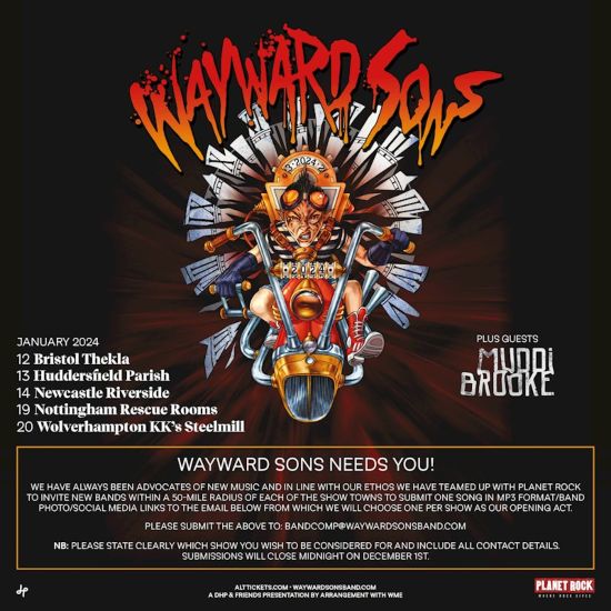 WAYWARD SONS have announced grunge rock power trio Muddibrooke as guests on their upcoming UK tour this January PLUS an exciting Planet Rock contest that gives local bands and artists an opportunity to open the shows.